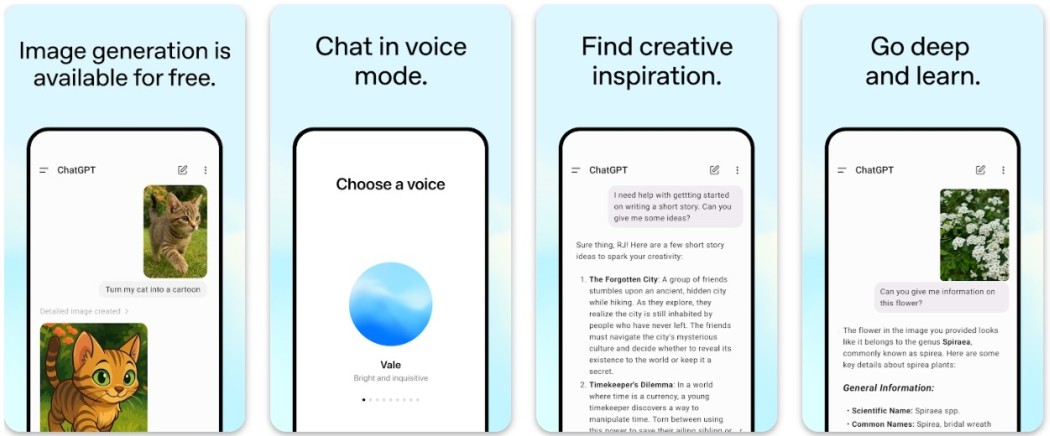 - ChatGPT: Designed by OpenAI, is a multipurpose conversational chatbot that offers access to LLM (large language models) and allows users to interact through text or voice. It can answer questions, offer creative inspirations, generate images, and assist with research through web search.