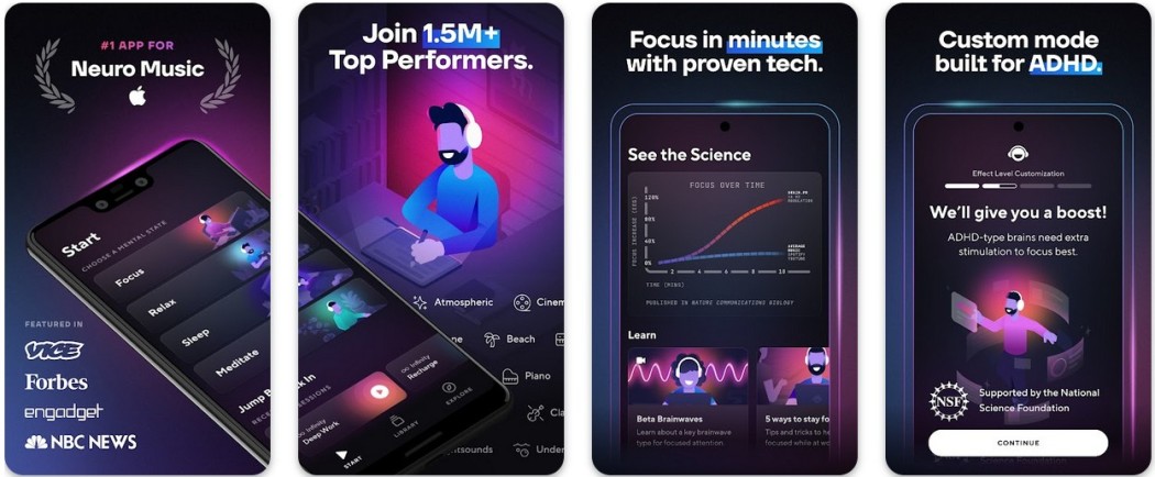 Brain.fm, developed by Daniel Clark, is a science-backed music app designed by music engineers and neuroscientists and uses its own patented AI technology to generate soundscapes that help you get your brain into a specific state by blocking out external distractions and immediately activating the part of your brain that could help you focus, relax, or sleep.