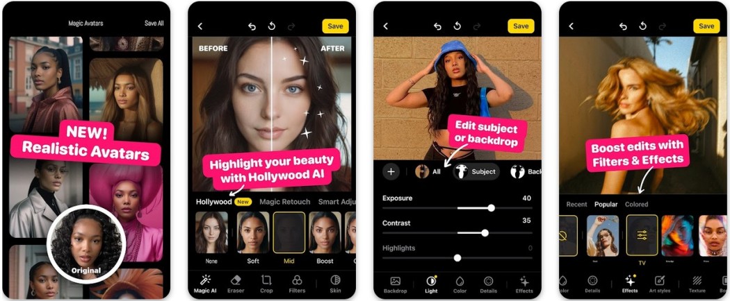 In a nutshell, you can consider Lensa as a miniature version of a powerful creative studio always available within your pocket. It can help retouch your photos, apply various filters and facial effects, blur the background, and you can also edit videos while enhancing and transforming the content.
