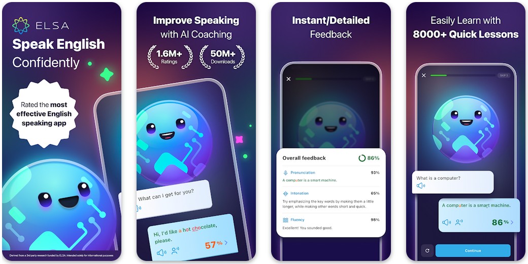 ELSA Speak is an AI-powered English language coach focused on improving your fluency in English while improving pronunciation. You will gain access to a personalized learning path, along with a real-time feedback system, which will help you speak English with superior confidence and clarity.