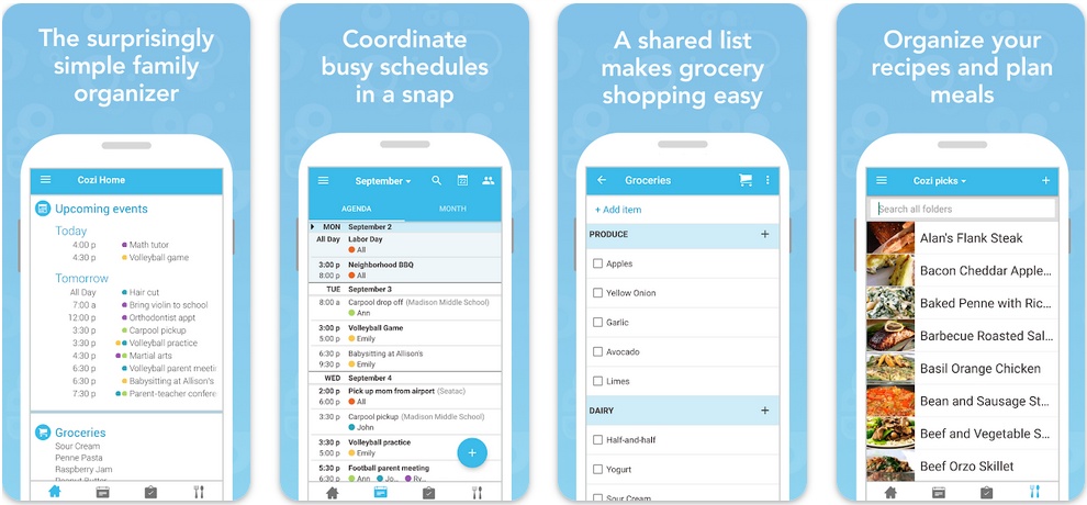 Cozi Family Organizer is a mobile app designed for Android and iOS to help you streamline family life while staying productive. It features a shared calendar along with color-coding for individual schedules, making it easy to keep track of everyone’s activities, from sports activities to appointments to shopping.