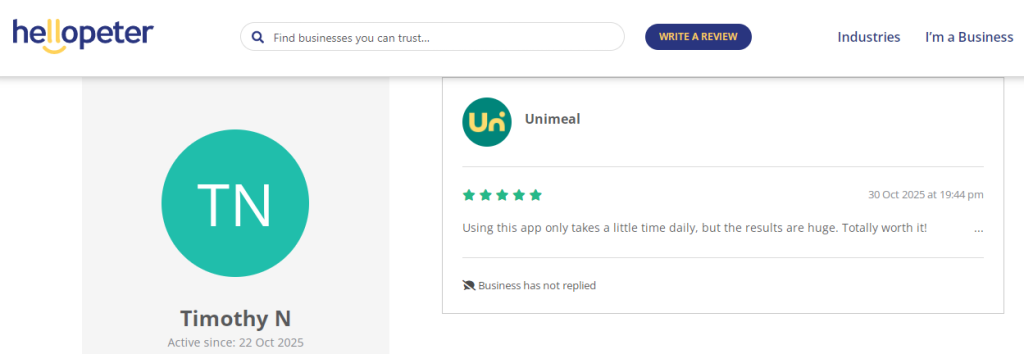 Google Play Store has a 4.2 out of 5 rating, which has grown from 25,000 reviews and 1 million installs. Third-party platforms consistently rate Unimeal positively across multiple review sites worldwide. ProductHunt users awarded an impressive 4.5 out of 5 rating overall consistently. HelloPeter reviewers gave 4.52 out of 5, showing strong satisfaction levels everywhere.